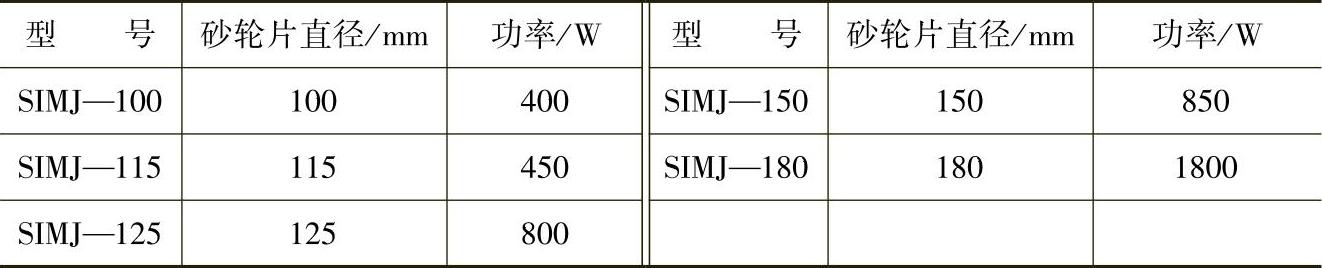 角向磨光机的功率很小,特别是100mm的角向磨光机,功率只有400W,使用时不能过载。常用角向磨光机的型号见表4-4。