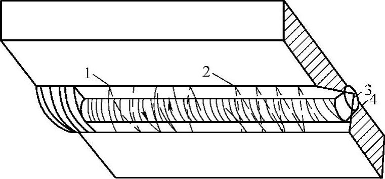 1—月牙形运条法 2—锯齿形运条法 3—第一层焊层 4—第二层焊层