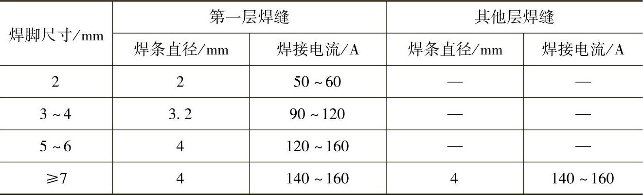 焊脚尺寸小于6mm时,宜采用单层焊;焊脚尺寸大于6mm时,可采用多层焊或多层多道焊。由于焊接时T形接头的散热较好,故可采用较大的焊接电流来提高生产效率。