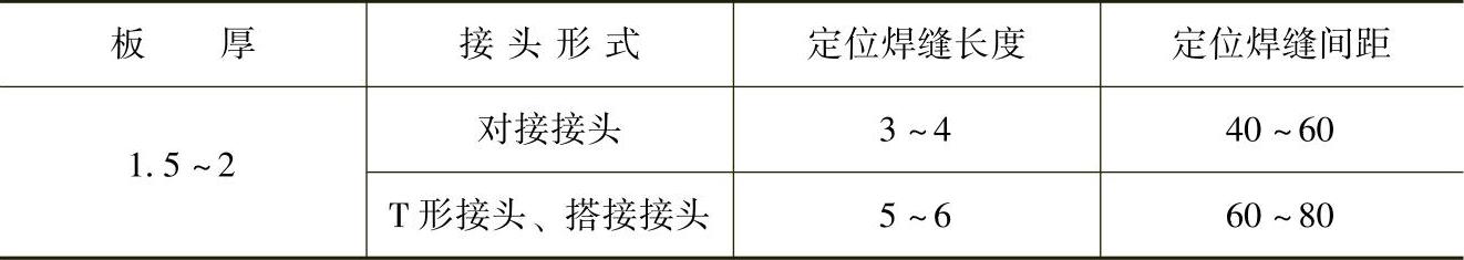 表4-19 薄板定位焊缝的要求 (单位:mm)
