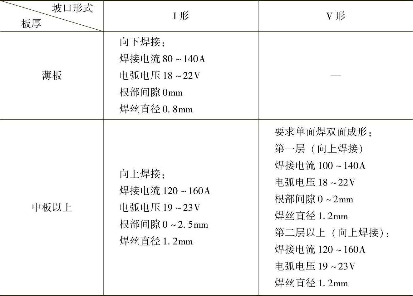 水平固定管的焊接通常又称为全位置焊接。因为它是管子固定不动,而焊枪绕管子圆周移动,整个焊接过程包括平焊、向下立焊、仰焊和向上立焊。为保证在不同的空间位置时,都能使液态金属不流失,焊道厚度均匀,熔合良好,不烧穿,成形美观,要求采用细焊丝、小电流的短路过渡形式。一般管壁较薄时,焊丝直径不超过1.0mm,管壁较厚时多采用ϕ1.2mm焊丝。