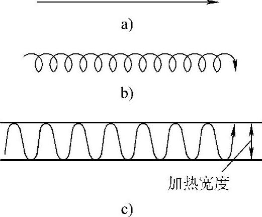 a)直通加热 b)链状加热 c)带状加热