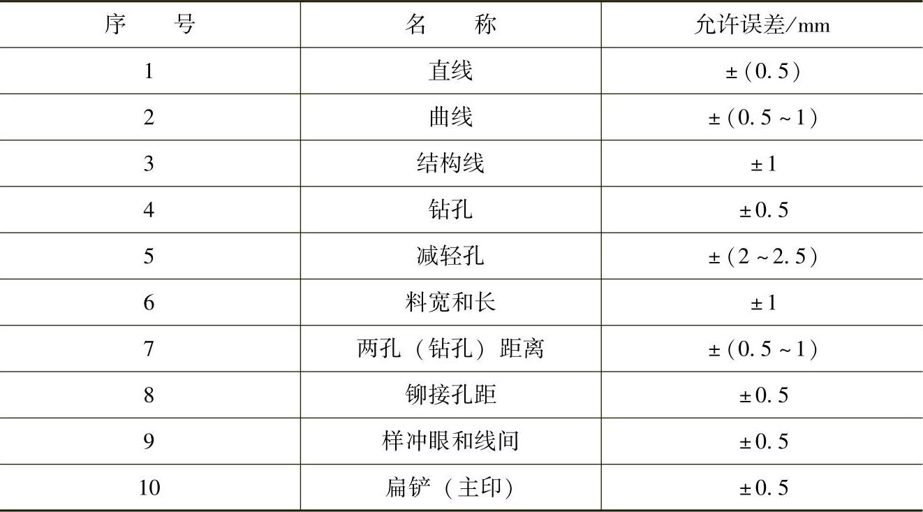 号料划线,为加工提供直接依据,为保证产品质量,号料划线偏差要加以限制,常用的号料划线允许误差值见表12-3。