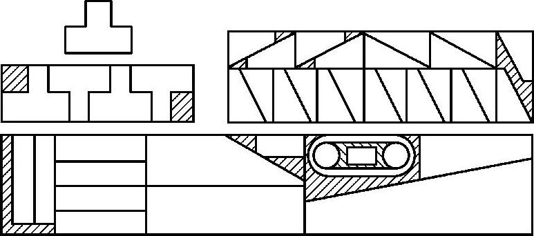 (1)集中套排 由于材料的规格多种多样,而号料的零件也是多种多样的。为了做到合理使用原材料,在零件数量较多时,将使用相同牌号、相同厚度的零件集中在一起,统筹安排,长短搭配,凸凹相就。这样便可充分利用原材料,提高材料的利用率,集中套排号料如图12-26所示。