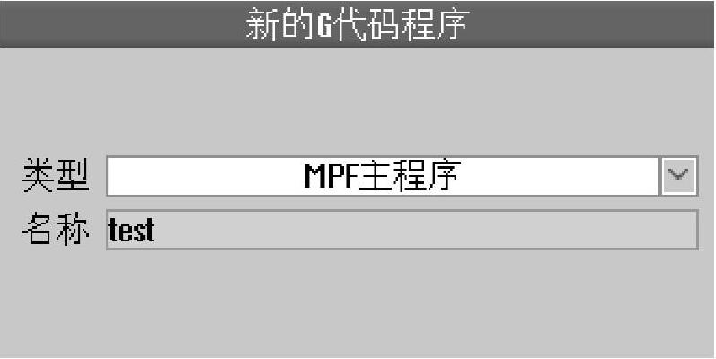 4)如果在工件目录下,需要选择新建程序的类型,如MPF主程序或SPF子程序。按规定输入程序名称并按软键,完成程序名称的建立,如图2-40所示。