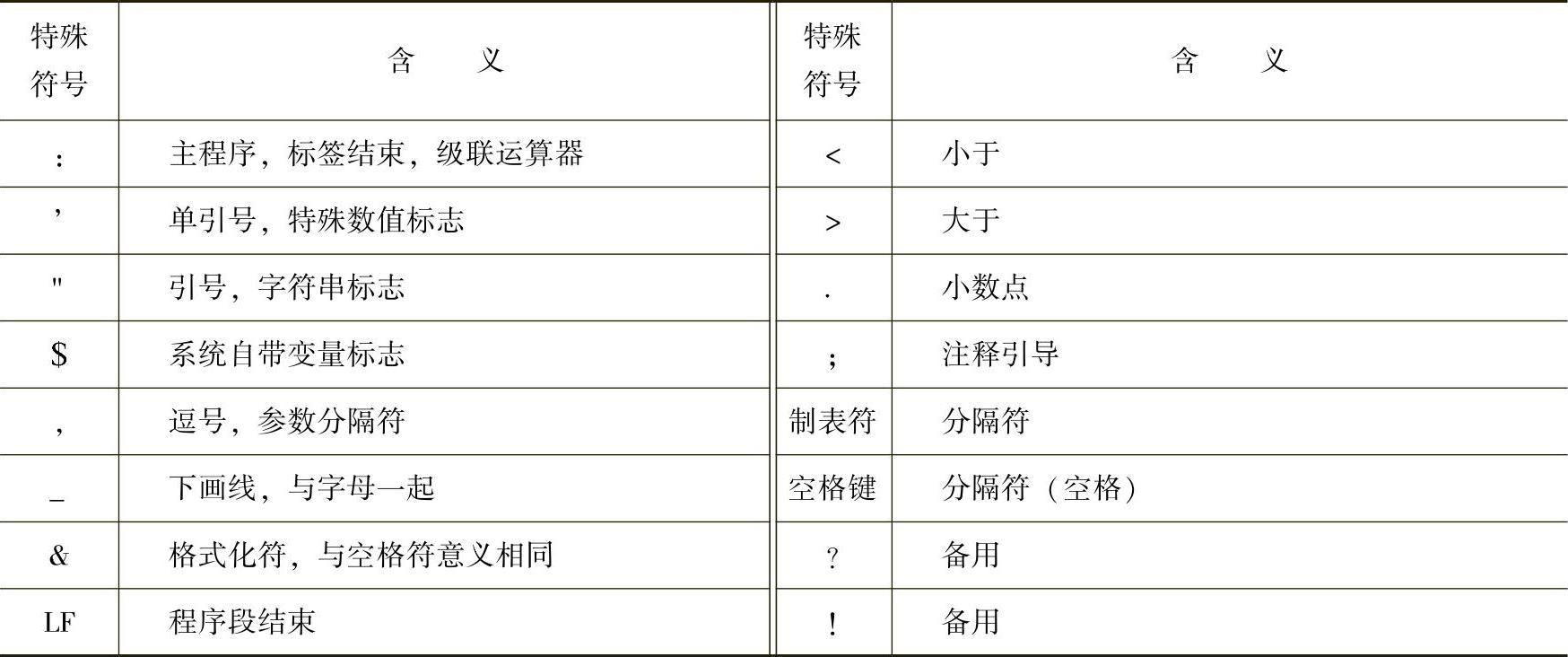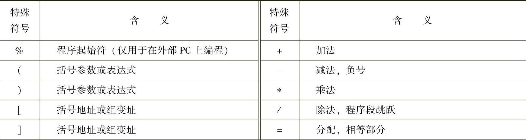 表3-2 编程使用的特殊符号