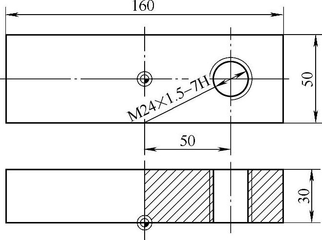 以M24×1.5-7H深30mm的螺纹孔为例,介绍铣削螺纹的编程方法。如图3-44所示,加工条件:已经完成螺纹底孔的加工,使用刀具为ϕ12mm单刃螺纹铣刀。