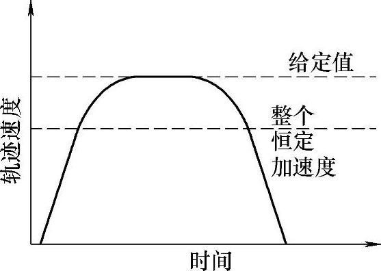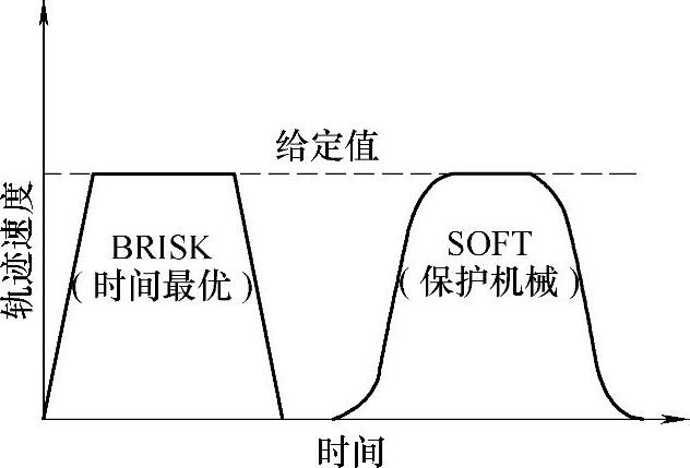 2)SOFT,SOFTA:单轴或轨迹轴以稳定的加速度运行,直至达到编程的进给速度(有急动限制的加速),如图5-18所示。