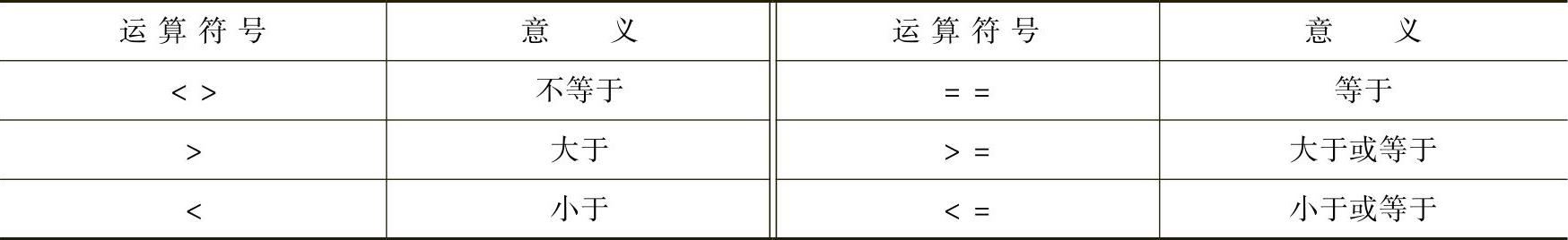 表6-6 逻辑比较运算符号