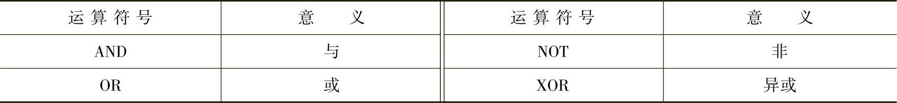 表6-7 逻辑运算符号
