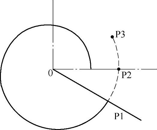 如果将循环判断条件改为:N80 WHILE R0<390,上述程序轨迹运行至图6-3所示P2点位置停下来,并产生014210#报警“程序段N100极坐标半径太大”。