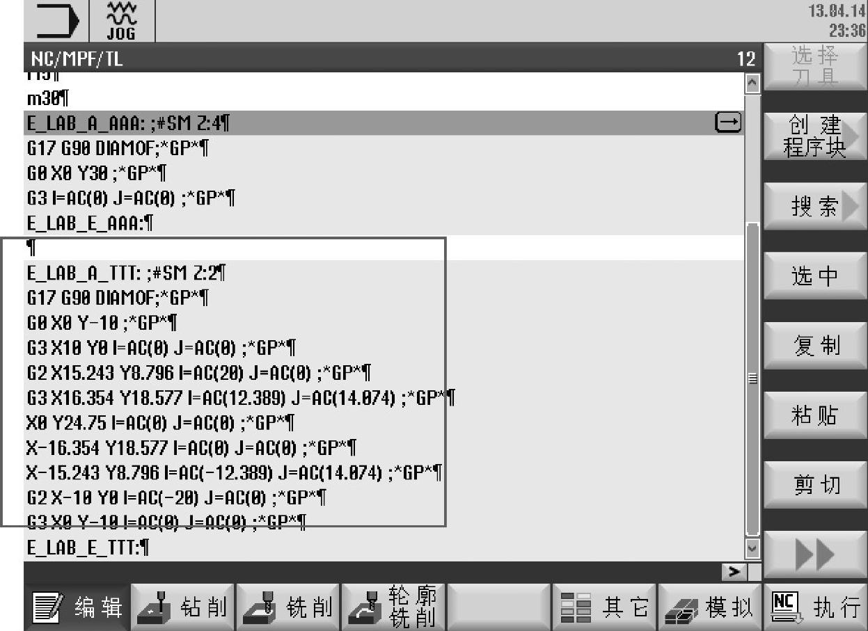图7-49 子程序中的标签方式下的轮廓编辑示例