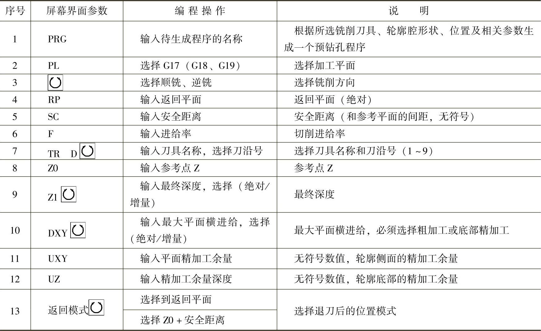 表7-28 预钻轮廓腔循环编程操作界面说明