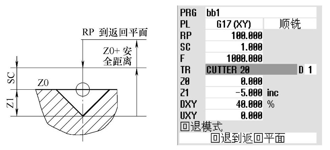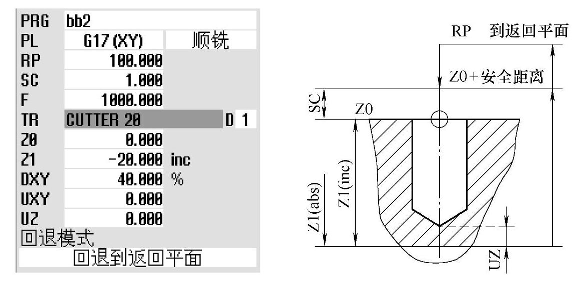7.6.2 预钻轮廓腔循环指令(CYCLE64)