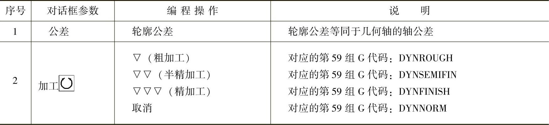 可以通过G功能组59(轨迹插补的动态模式)了解高速设定循环中所选择的加工方式。