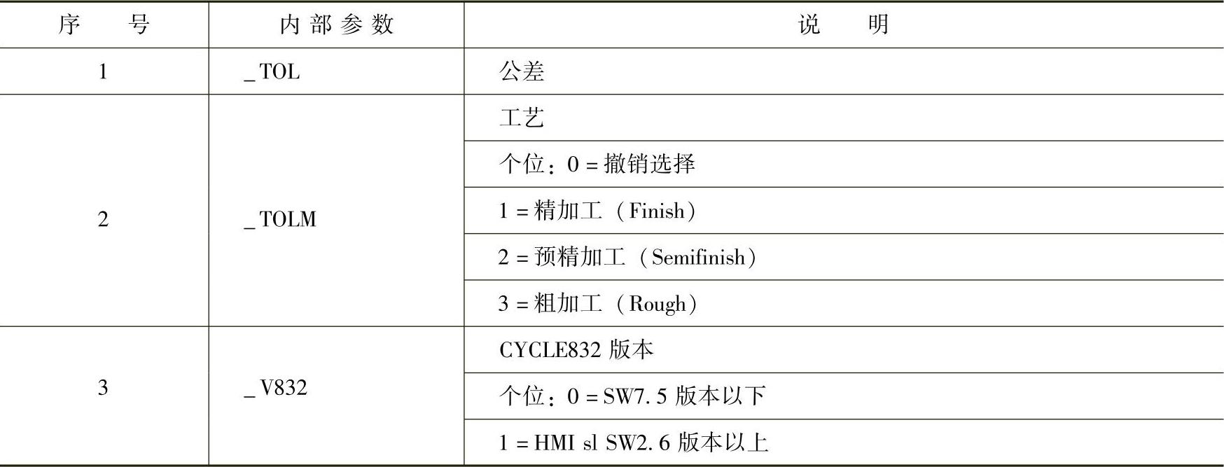 (2)编译后的程序格式参数列表 CYCLE832(_TOL,_TOLM,_V832)。