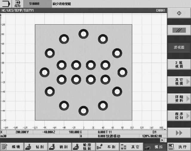 。移动光标选择需要加工的孔,单击鼠标左键确认选择,则该孔显示为绿色,在该方向上未选择的孔显示为黄色