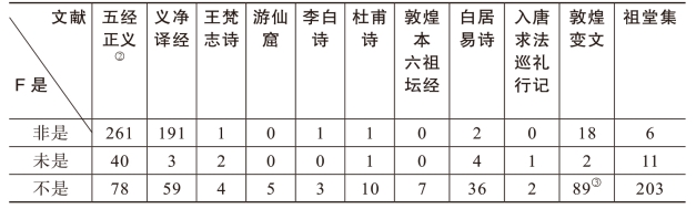 二是“不是”对“非”的替换至晚在中唐以后的口语中已经基本完成,而不是如董文所说的晚至“元末明初”。要确认这一点难度较大,光看统计数据不能说明问题,必须借助过细的语料分析(表5)。