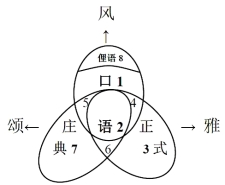 A—C体都是原型范畴,各体内部存在典型成员与非典型成员的差异:有的词语非此即彼,绝不用于其他的体,即图2中的三个角(1、3、7),是典型成员[5];有的则主要用于此体但并非绝对不用于彼体,就是非典型成员。