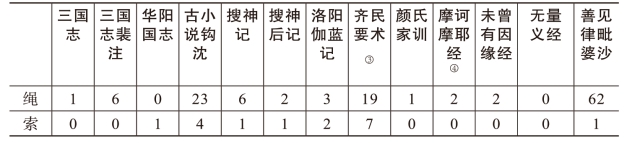 《世》中有很多“索”,但都是动词,当“索取”或“搜索”讲。我们调查了部分中土文献和萧齐的四种译经[261],数据如表1[262]。