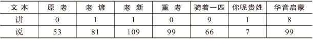 虽然就数量而言,“讲”仍无法与“说”相提并论,用法上也有局限,但这些贴近口语的文献证实了当时北方方言中“讲”也拥有了“说类词”主导词的一席之地,同时也反映出《重刊老乞大》与实际口语的脱节。