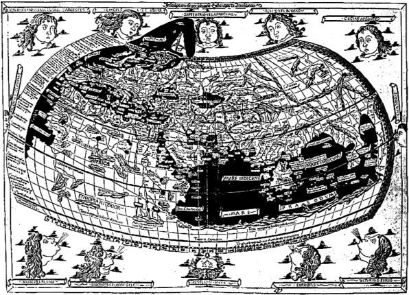 到了地理大发现时期,人们对海洋以及海陆关系的探索达到新的广度:从葡萄牙人开辟绕过好望角通往东方的路线,到哥伦布完成到达美洲的航行,从西方立场来看的“已知世界”的内容与范围不断延伸。1519—1522年,麦哲伦完成了环球航行,确立了地球为球形和作为统一而完整水域的“世界洋”的概念[21]。