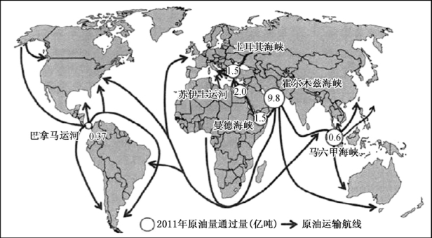 图3-5 2011年全球海上运输通道石油通过量