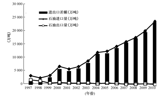 图3-6 1997—2010我国石油进出口量及其差额