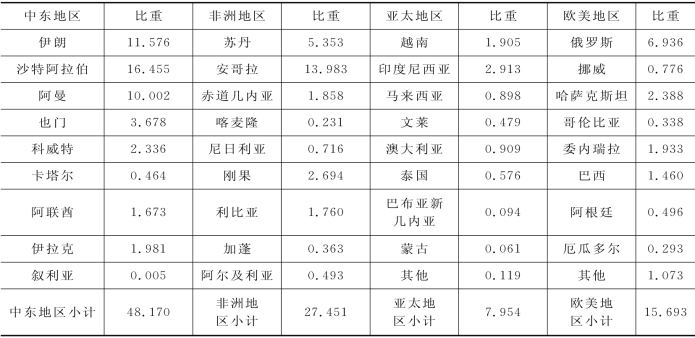 表3-3 主要石油输出国家进口比重(多年平均) (%)