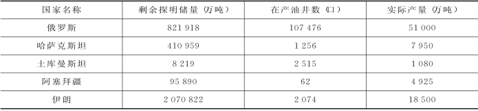 表3-8 里海沿岸各国2010年石油储量及开采量