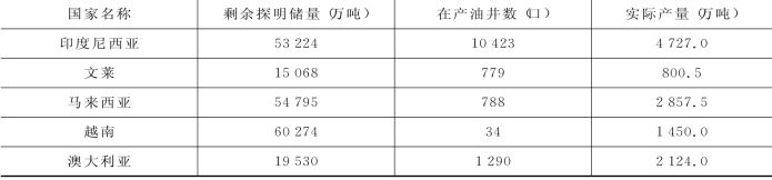 表3-9 东南亚主要国家和澳大利亚2010年石油储量及开采量