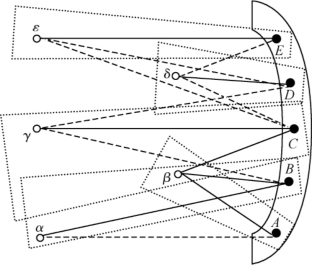 如图4-2所示,黑色圆点表示港口,白色圆点表示腹地城市,实线表示强联系,虚线表示弱联系,扇形面域内为港口辐射范围。通常情况下,当出现港口A和城市α、β时,由于空间距离的远近(或是交通可达性的差异),A港与β市呈现强联系,而与α市呈现弱联系;在附近出现港口B,由于其吞吐量大,服务能力强,因而与城市α、β都有很强联系;在以外出现同样规模的港口C,对城市β、γ都产生强辐射联系,但是δ为资源型城市,由于C港缺少专业化港口设施,因此与δ城市联系较弱,而此时专业化港口D出现,其与δ城建立了密切的联系;ε城为内陆大城市,与港口E有着密切联系,其通达条件和C、D有一定的关联,但通常情况下优先选择港口E。