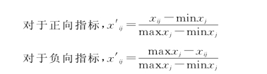 式中和xij分别为i地区第j项指标标准化后的值和原始值,maxxj和minxj分别为第j项指标的最大值和最小值。