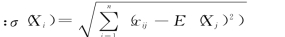 在此,采用均方差赋权法来确定指标的权重。均方差赋权法是一种客观赋值法,其权重是根据各指标在评价单位中的实际数据而形成,由于不依赖于人的主观判断,其客观性较强。其基本思路是,以各评价指标为随机变量,指标Xi的无量纲化属性值为该随机变量的取值,首先求出各指标的均方差,然后将这些均方差归一化,其结果即为各指标的权重系数。具体的计算步骤为[24]: