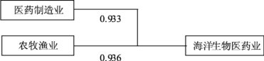 海洋生物医药业,与其上游关联产业农牧渔业和医药制造业关联密切,作为海洋新兴产业,其上游为其提供了良好的物质基础和技术上的支撑(图4-19)。