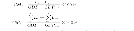 式中,GMit为第i海洋产业贡献率,Lit为第i海洋产业总产值,GMt为海洋产业总产值贡献率。