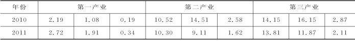 表4-10 海洋三次产业对我国三次产业增长拉动效应的时间序列变化 (%)