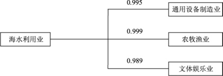 海水利用业,主要提供生产生活用水,与其后向关联产业通用设备制造业、农牧渔业和文体娱乐业都有较强的联系(图4-21)。