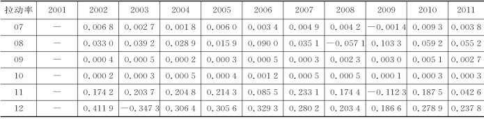 表4-8 海洋经济对我国经济增长拉动效应的时间序列变化 (%)