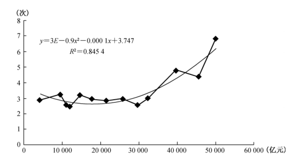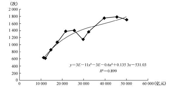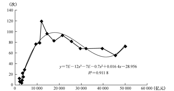 图4-27 海洋GDP与赤潮发生次数拟合关系