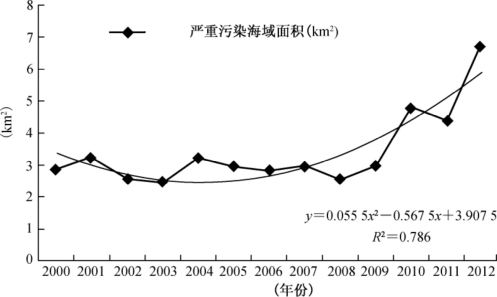 图4-26 近岸严重污染海域面积变化趋势及其拟合关系