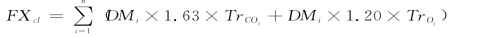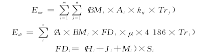 其中,DMi为第i种滨海植物的干物质损失量(g/a),TrCO2、TrO2为CO2和O2的能值转换率(sej/g)。