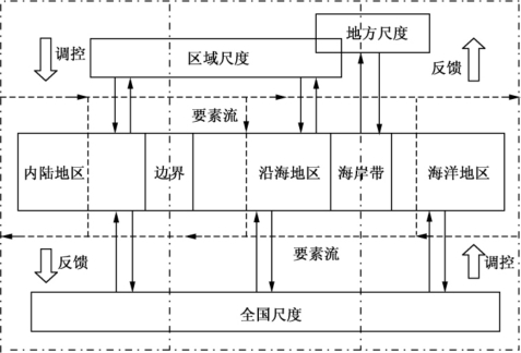 同时,从尺度的连续性上来看,沿海区域是尺度转换的关键节点(图5-1)。从海洋系统来说,沿海区域是从海洋到陆地的过渡地带,对内陆地区来说,沿海地区是其通往海洋的媒介。因此,无论是研究海洋、海岸带开发与治理模式,探索海陆相互作用机理,还是协调全国海洋与陆地区域发展战略,都应充分发挥沿海地区在不同尺度上所承担的职能,关注要素在不同区域间的配置及其对区域联系的整体影响,在此基础上,寻求尺度整合发展的实施途径。