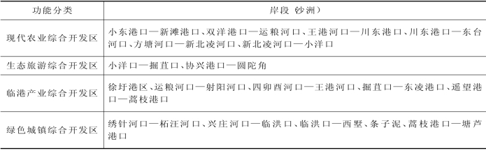 表5-3 江苏省沿海滩涂开发围区功能分类