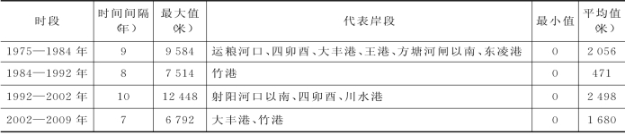 表5-2 江苏省沿海地区四个时段岸线推移距离