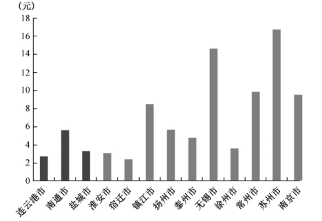 图5-9 江苏省各市人均GDP比较(前三市为沿海城市)