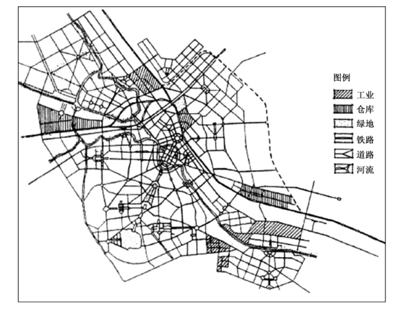 1955年以来,中国在国际上受到经济封锁,根据中央“限制沿海、支援内地”的政策,沿海城市主要目标是合理有效地利用资源,支援内地建设,不进行新的发展[24],天津向沿海发展又一次受到限制。由于沿海工业的改造、扩建、新建的投资减少了,其老工业基地的作用和工业潜力未得到加强和发挥,同时,被定位为服务首都的综合性工业城市。我国于1957年3月编制了《天津市城市初步规划方案》,该方案提出,“天津是综合性工业城市,南北水运的要冲,华北水陆交通的枢纽[25]。”但城市在空间格局上仍然强调内陆中心城区的发展,继续维持原先的同心圆结构。沿海地区发展在此仍然受到限制。