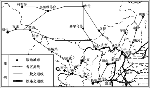 图6-6 1930年前后天津港口城市基本经济腹地范围示意图