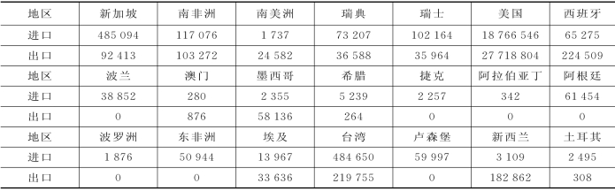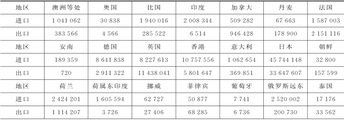 表6-2 1931年天津与世界各地对外贸易进出口额(万两)