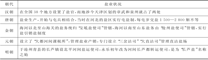 表6-1 天津沿海地区古代盐业生产状况